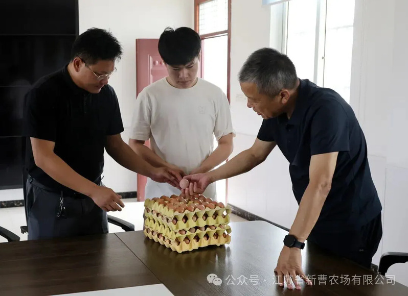在肉鸡场和蛋鸡场,崔静波向节日期间坚守岗位的养殖工人表示慰问,并走进食堂后厨,嘱咐负责人一定要把伙食安排好,让大家在封闭的养殖场所内过一个开心愉快的节日。他拿起一枚初产蛋仔细端详,详细了解蛋鸡开产情况和人员配置分工,要求严格落实养殖技术规程,做好疫病防治工作,努力降低养殖成本、提高产蛋效率,促进蛋鸡稳产高产。针对市场营销,他强调,要对接好销售渠道,讲好“初生蛋”故事,及时销售初产蛋,并稳定客户群体,为即将到来的产蛋高峰打通销售渠道。