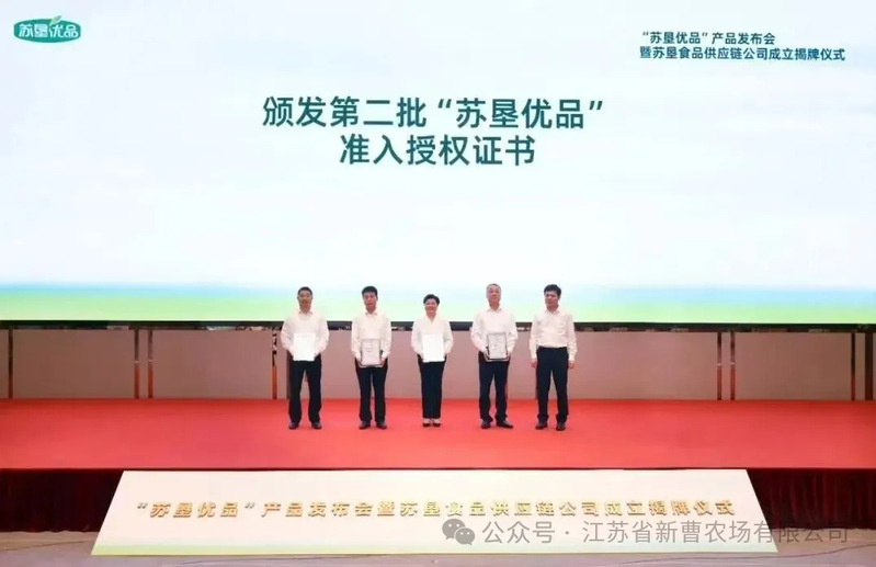 10月16日,“苏垦优品”产品发布会暨江苏农垦食品供应链管理有限公司成立揭牌仪式在南京举行。新曹农场公司“玉谷无抗鲜鲜蛋”成功入选第二批“苏垦优品”,农场公司党委书记、董事长崔静波现场接受授权证书。