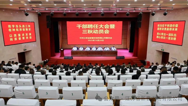 10月20日,苏垦农发新曹分公司召开干部聘任暨“三秋”动员会,完成新一轮管理人员竞争上岗与聘任工作,对关键农事“三秋”工作进行全面动员部署。党委书记、董事长、分公司总经理崔静波出席会议并讲话,党委副书记、总经理骆培超主持会议,纪委书记胡国君提“三秋”纪律作风要求,分公司副总经理夏济兵作“三秋”动员报告。农场领导贺在利、杨阳、葛猛出席。