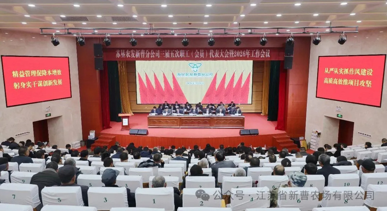 3月8日下午,苏垦农发新曹分公司召开第三届第五次职工代表大会暨2026年工作会议。会议总结回顾“十四五”时期及2025年各项工作成效,科学部署2026年重点任务,动员分公司全体干部职工锚定集团“一核双擎”发展战略航向,凝心聚力、实干笃行,奋力激活新曹高质量发展新动能。